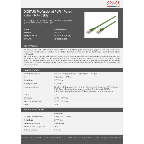 Jetzt anmeldenProduktinformationen "DIGITUS CAT 6A S/FTP Patchkabel, PUR (TPU)"