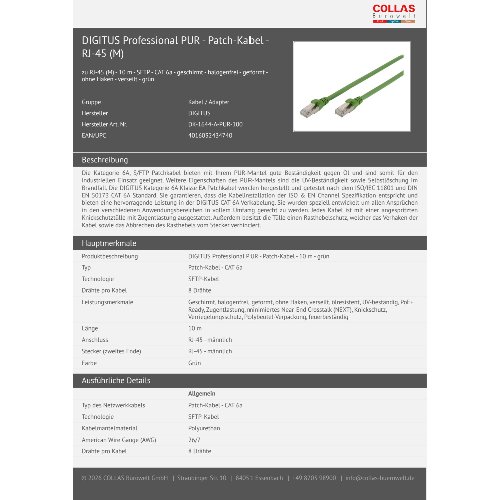 Jetzt anmeldenProduktinformationen "DIGITUS CAT 6A S/FTP Patchkabel, PUR (TPU)"