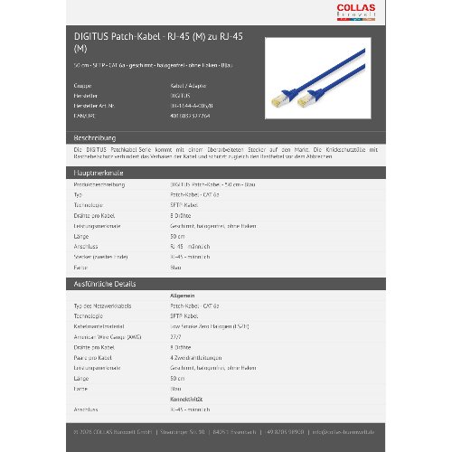 Jetzt anmeldenProduktinformationen "DIGITUS CAT 6A S/FTP Patchkabel"