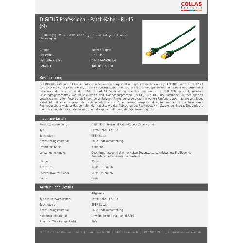 Jetzt anmeldenProduktinformationen "DIGITUS CAT 6A S/FTP Patchkabel"