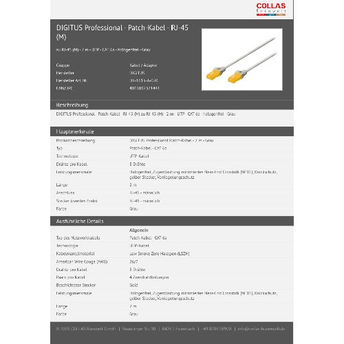 Jetzt anmeldenProduktinformationen "DIGITUS CAT 6A U/UTP Patchkabel"