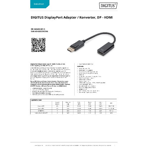 Jetzt anmeldenProduktinformationen "DIGITUS DisplayPort Adapter / Konverter, DP - HDMI"
