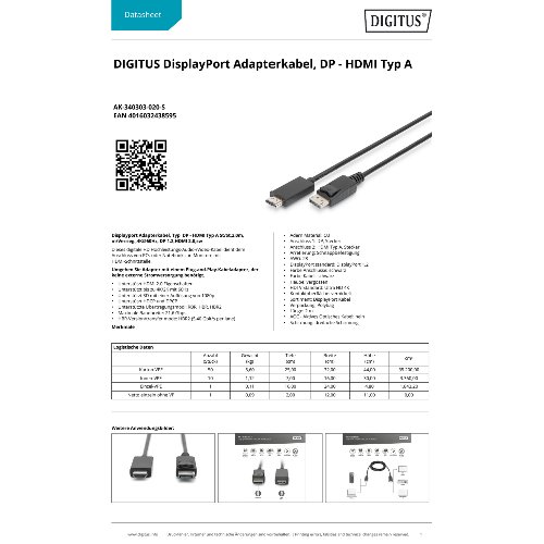 Jetzt anmeldenProduktinformationen "DIGITUS DisplayPort Adapterkabel, DP - HDMI Typ A"