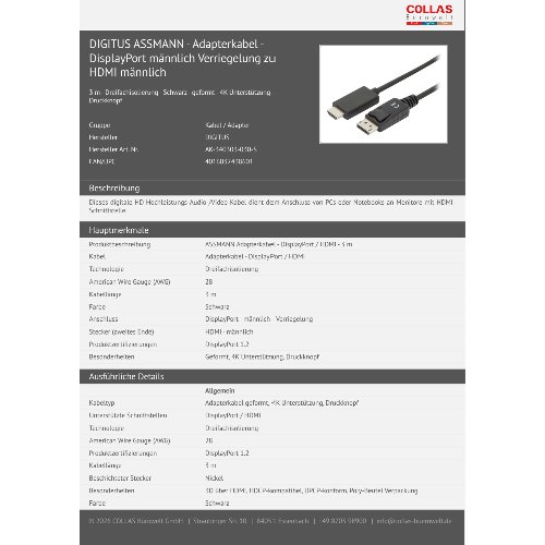 Jetzt anmeldenProduktinformationen "DIGITUS DisplayPort Adapterkabel, DP - HDMI Typ A"