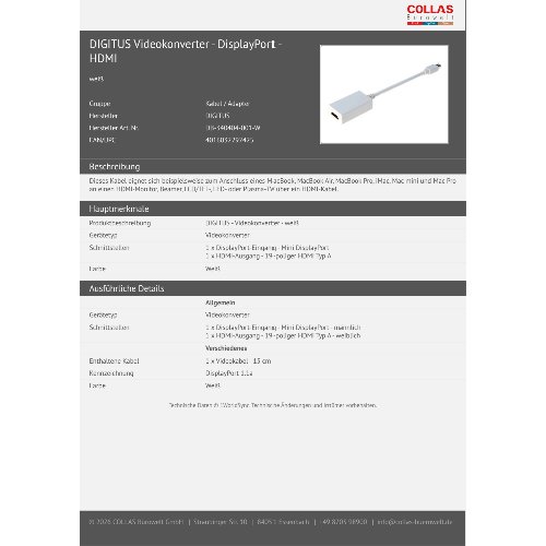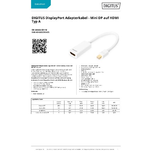 Jetzt anmeldenProduktinformationen "DIGITUS DisplayPort Adapterkabel - Mini DP auf HDMI Typ A"