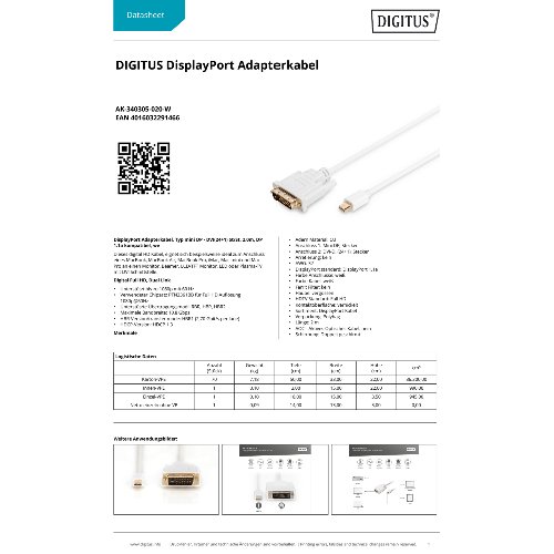Jetzt anmeldenProduktinformationen "DIGITUS DisplayPort Adapterkabel"