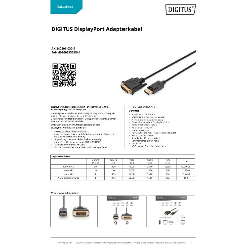 Jetzt anmeldenProduktinformationen "DIGITUS DisplayPort Adapterkabel"