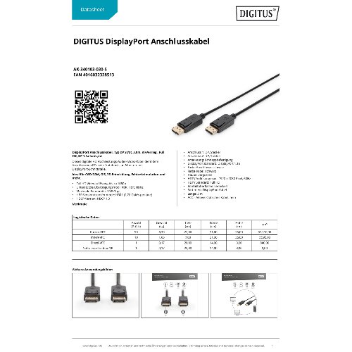 Jetzt anmeldenProduktinformationen "DIGITUS DisplayPort Anschlusskabel"