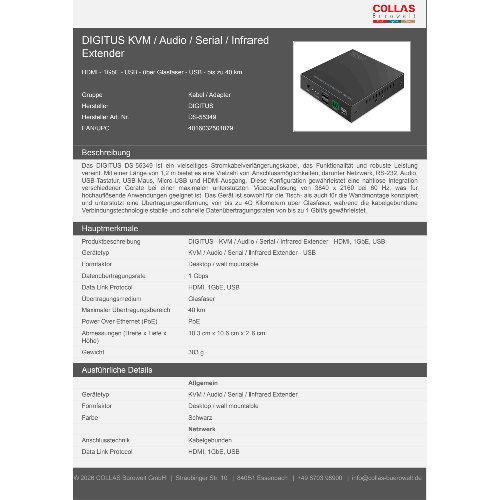 Jetzt anmeldenProduktinformationen "DIGITUS HDMI Fiber KVM IP Receiver, 4K/60Hz"
