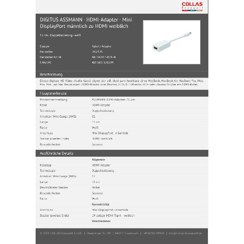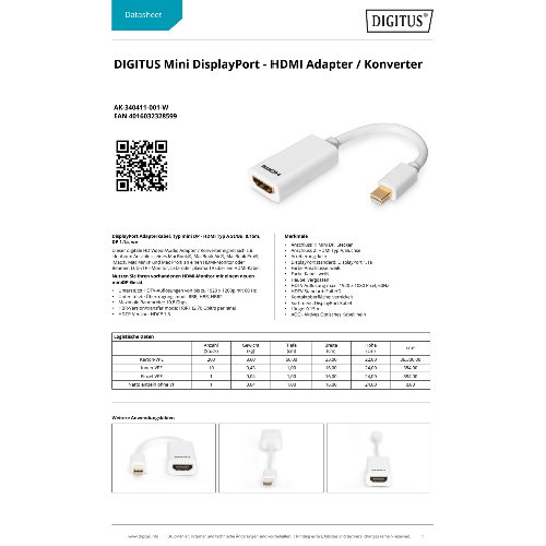 Jetzt anmeldenProduktinformationen "DIGITUS Mini DisplayPort - HDMI Adapter / Konverter"