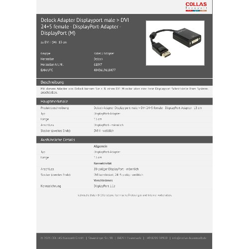 - Mit diesem Adapter von Delock können Sie z. B. einen DVI Monitor über eine freie Displayport Schnittstelle Ihres Systems anschließen.