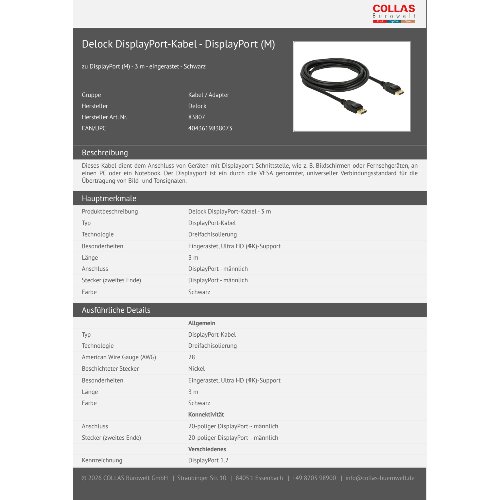 Jetzt anmeldenProduktinformationen "Delock DisplayPort-Kabel - DisplayPort (M)"