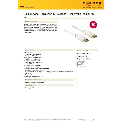 Jetzt anmeldenProduktinformationen "Delock DisplayPort-Kabel - DisplayPort (M)"