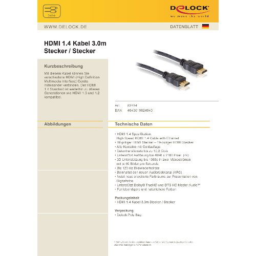 - Dieses High Speed HDMI mit Ethernet Kabel von Delock entspricht dem neuesten HDMI Standard und vereint schnelle Datenübertragung sowie Audio-/Video- und Internetverbindung in einem. Sie können somit z.B. Ihren PC oder ein DVD/Blu-ray Laufwerk an einen Monitor oder TV anschließen. Der HDMI-A Stecker ist zudem abwärtskompatibel zu seinen Vorgängern und ermöglicht weiterhin den Anschluss Ihrer bisherigen Geräte.