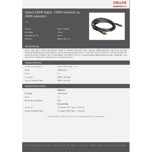 - Dieses High Speed HDMI mit Ethernet Kabel von Delock entspricht dem neuesten HDMI Standard und vereint schnelle Datenübertragung sowie Audio-/Video- und Internetverbindung in einem. Sie können somit z.B. Ihren PC oder ein DVD/Blu-ray Laufwerk an einen Monitor oder TV anschließen. Der HDMI-A Stecker ist zudem abwärtskompatibel zu seinen Vorgängern und ermöglicht weiterhin den Anschluss Ihrer bisherigen Geräte.