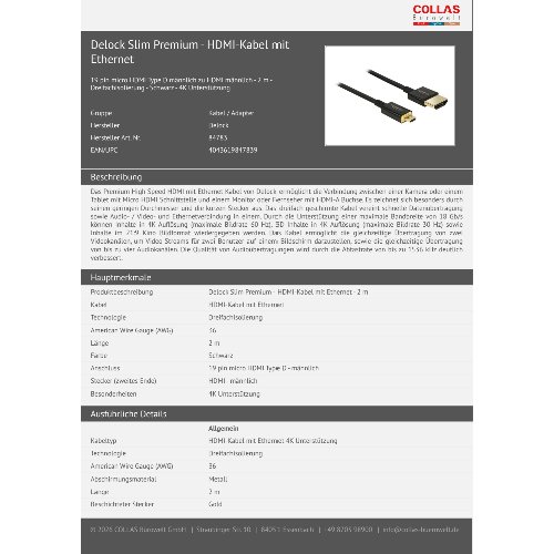Jetzt anmeldenProduktinformationen "Delock Slim Premium - HDMI-Kabel mit Ethernet"