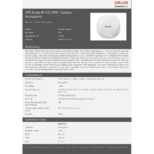 Jetzt anmeldenProduktinformationen "HPE Aruba AP-615 (RW) - Campus - Accesspoint"