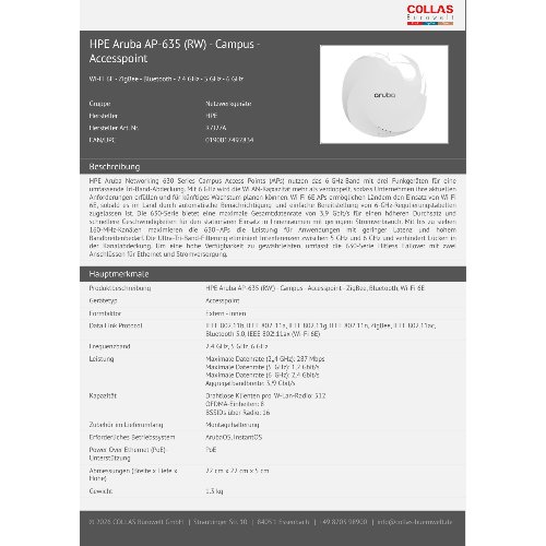 Jetzt anmeldenProduktinformationen "HPE Aruba AP-635 (RW) - Campus - Accesspoint"