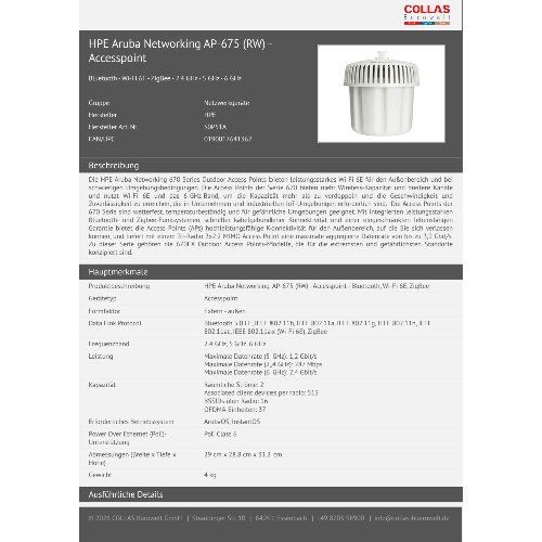 Jetzt anmeldenProduktinformationen "HPE Aruba Networking AP-675 (RW) - Accesspoint"