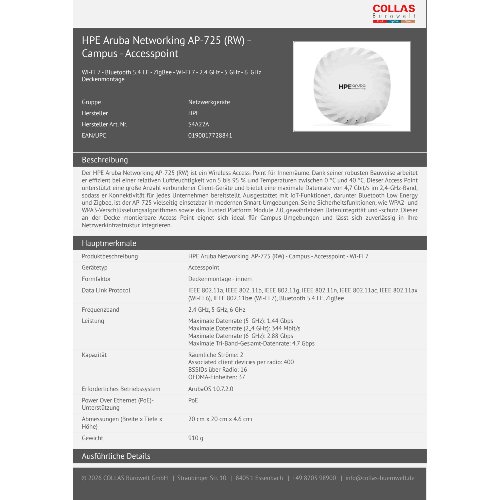 Jetzt anmeldenProduktinformationen "HPE Aruba Networking AP-725 (RW) - Campus - Accesspoint"