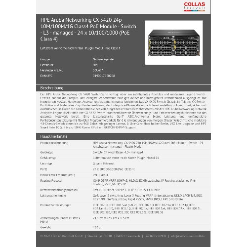 Jetzt anmeldenProduktinformationen "HPE Aruba Networking CX 5420 24p 10M/100M/1G Class4 PoE Module - Switch - L3 - managed - 24 x 10/100/1000 (PoE Class 4)"