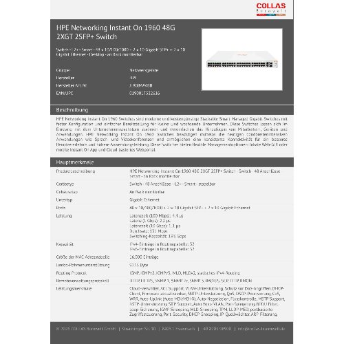 Jetzt anmeldenProduktinformationen "HPE Networking Instant On 1960 48G 2XGT 2SFP+ Switch"