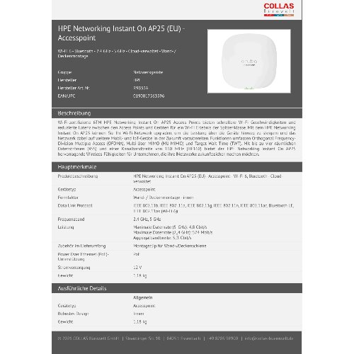 Jetzt anmeldenProduktinformationen "HPE Networking Instant On AP25 (EU) - Accesspoint"