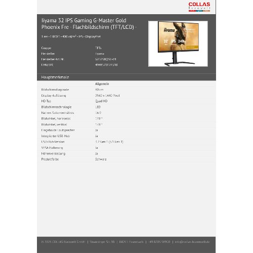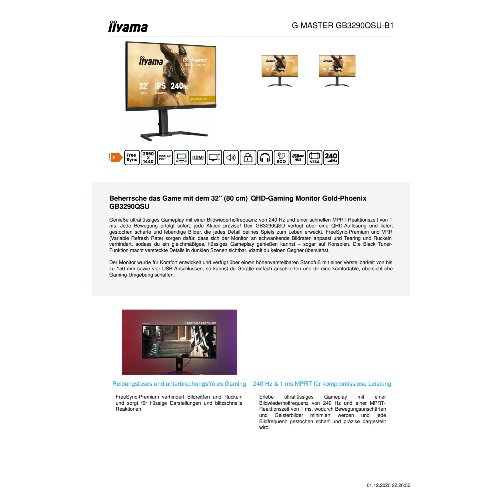 Produktinformationen "Iiyama 32" IPS Gaming G-Master Gold Phoenix Fre - Flachbildschirm (TFT/LCD) - 81,3 cm"
