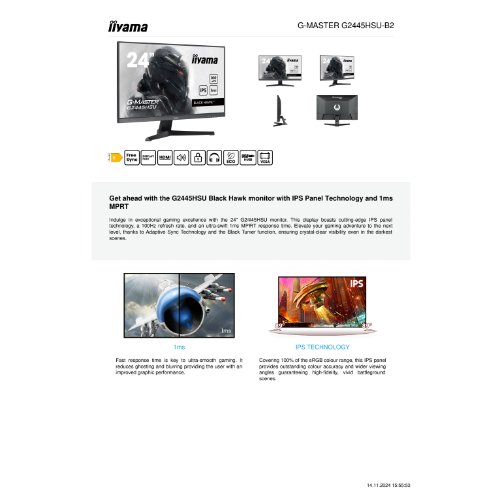 Jetzt anmeldenProduktinformationen "Iiyama G-MASTER Black Hawk G2445HSU-B2 - LED-Monitor - 61 cm (24")"