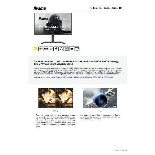 Jetzt anmeldenProduktinformationen "Iiyama G-MASTER Black Hawk GB2741QSU-B1 - LED-Monitor - Gaming - 68.6 cm (27")"