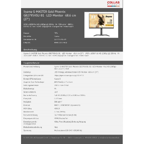 Jetzt anmeldenProduktinformationen "Iiyama G-MASTER Gold Phoenix GB2795HSU-B1 - LED-Monitor - 68.6 cm (27")"