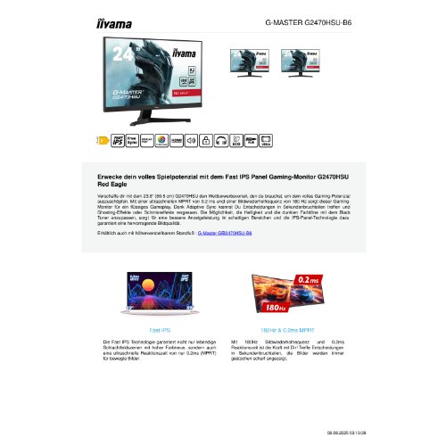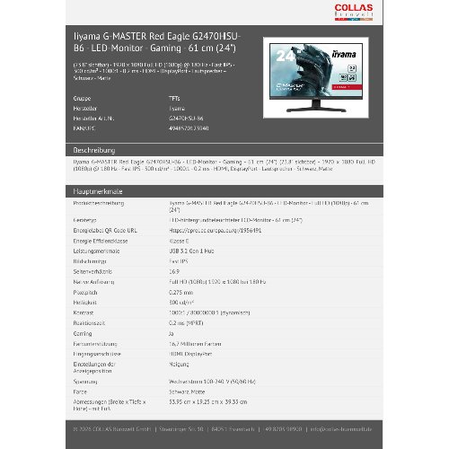 Jetzt anmeldenProduktinformationen "Iiyama G-MASTER Red Eagle G2470HSU-B6 - LED-Monitor - Gaming - 61 cm (24")"