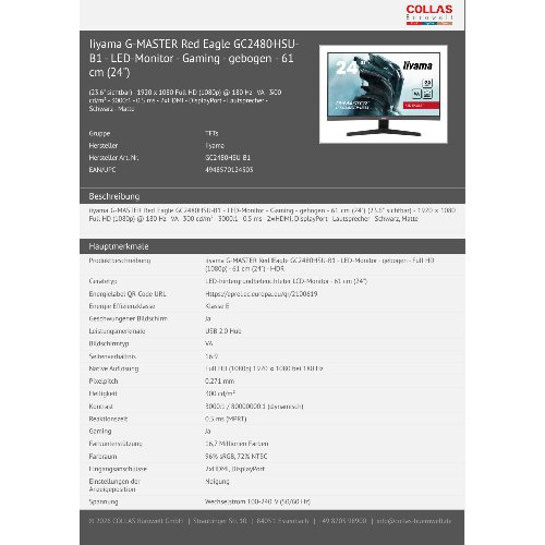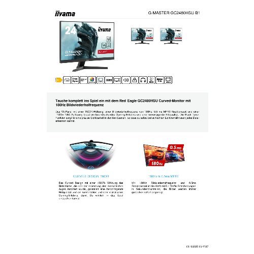 Jetzt anmeldenProduktinformationen "Iiyama G-MASTER Red Eagle GC2480HSU-B1 - LED-Monitor - Gaming - gebogen - 61 cm (24")"