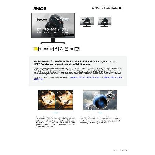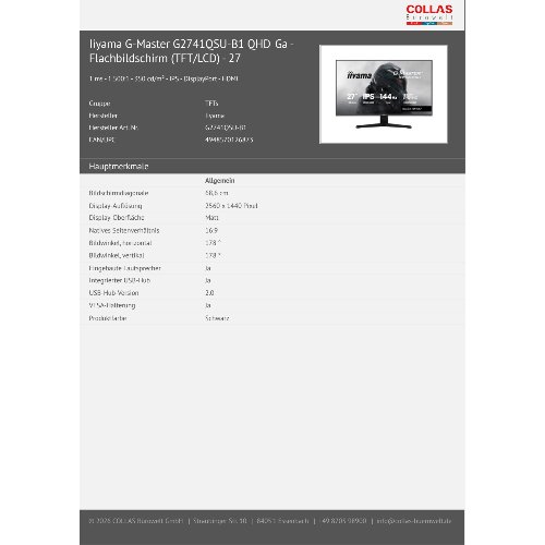 Jetzt anmeldenProduktinformationen "Iiyama G-Master G2741QSU-B1 QHD Ga - Flachbildschirm (TFT/LCD) - 27""
