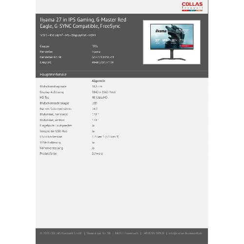 Produktinformationen "Iiyama LCD 4K UHD Business/Gaming - Flachbildschirm (TFT/LCD) - 27""