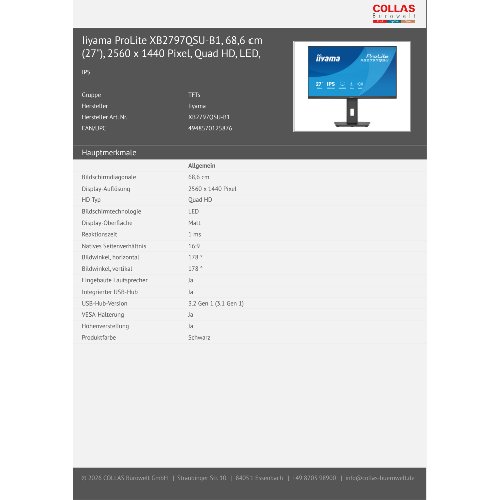 Jetzt anmeldenProduktinformationen "Iiyama Monitor XB2797QSU-B1 - 27""