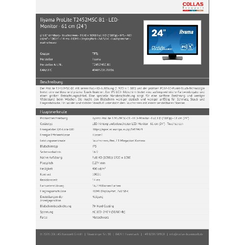Jetzt anmeldenProduktinformationen "Iiyama ProLite T2452MSC-B1 - LED-Monitor - 61 cm (24")"
