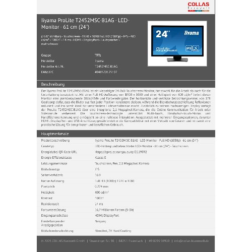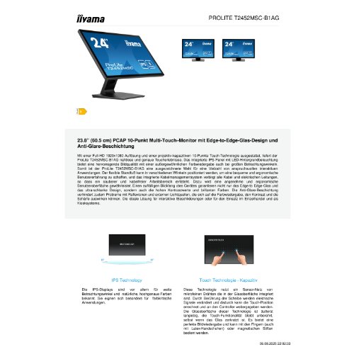 Produktinformationen "Iiyama ProLite T2452MSC-B1AG - LED-Monitor - 61 cm (24")"