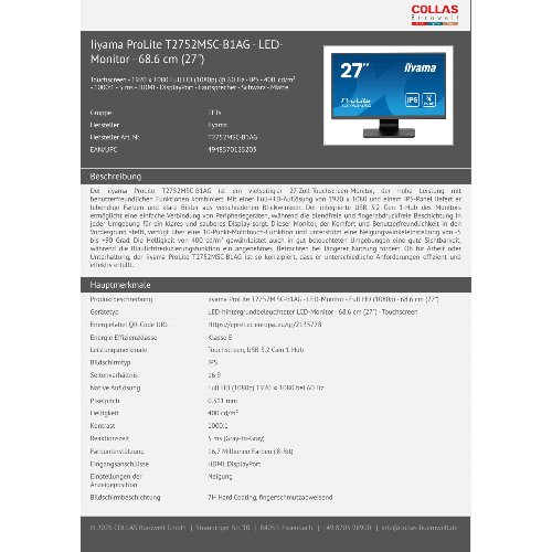 Iiyama ProLite T2752MSC-B1AG - LED-Monitor - 68.6 cm (27")