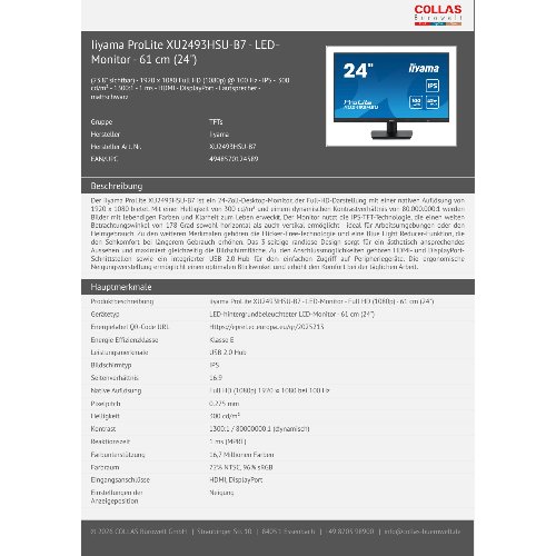 Produktinformationen "Iiyama ProLite XU2493HSU-B7 - LED-Monitor - 61 cm (24")"