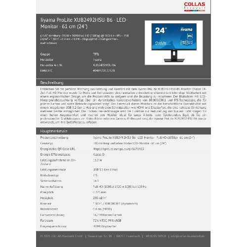 Produktinformationen "Iiyama ProLite XUB2492HSU-B6 - LED-Monitor - 61 cm (24")"