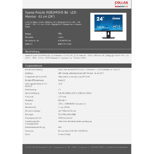 Produktinformationen "Iiyama ProLite XUB2493HS-B6 - LED-Monitor - 61 cm (24")"