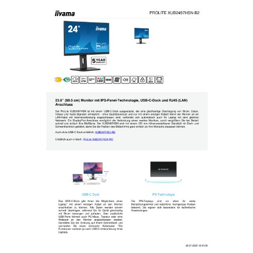 Produktinformationen "Iiyama ProLite XUB2497HSN-B2 - LED-Monitor - 61 cm (24")"
