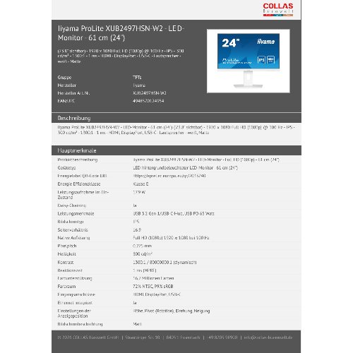 Produktinformationen "Iiyama ProLite XUB2497HSN-W2 - LED-Monitor - 61 cm (24")"