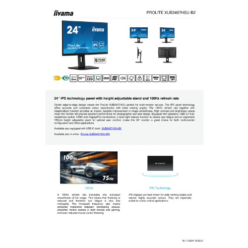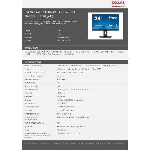 Jetzt anmeldenProduktinformationen "Iiyama ProLite XUB2497HSU-B2 - LED-Monitor - 61 cm (24")"