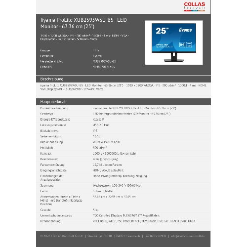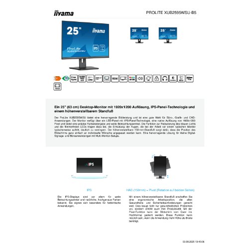 Jetzt anmeldenProduktinformationen "Iiyama ProLite XUB2595WSU-B5 - LED-Monitor - 63.36 cm (25")"