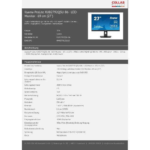 Produktinformationen "Iiyama ProLite XUB2792QSU-B6 - LED-Monitor - 69 cm (27")"