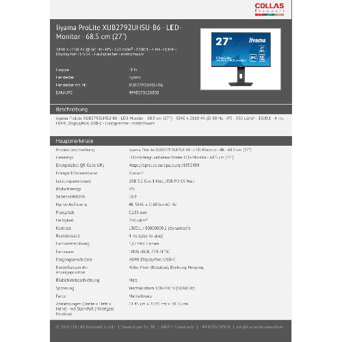 Iiyama ProLite XUB2792UHSU-B6 - LED-Monitor - 68.5 cm (27")