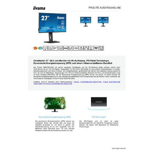 Jetzt anmeldenProduktinformationen "Iiyama ProLite XUB2792UHSU-B6 - LED-Monitor - 68.5 cm (27")"