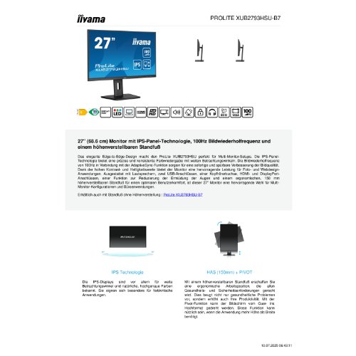 Jetzt anmeldenProduktinformationen "Iiyama ProLite XUB2793HSU-B7 - LED-Monitor - 69 cm (27")"